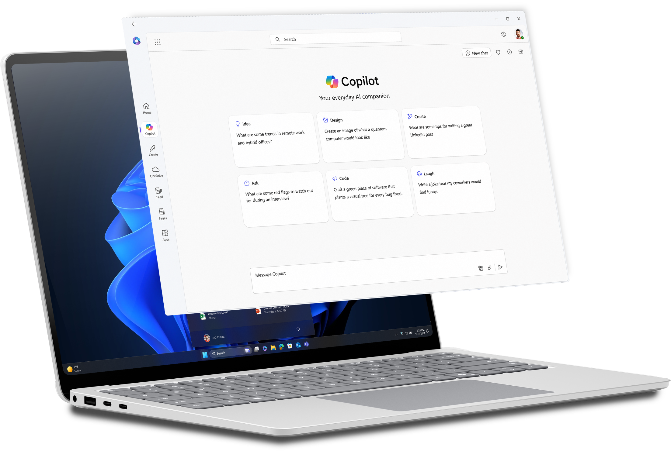 Ottimizza i tuoi dispositivi Windows 11 con le migliori esperienze Copilot direttamente sul tuo dispositivo. Aumenta la creatività e la produttività e modifica le immagini in modo professionale, genera grafiche dettagliate con le tue parole, riassumi, analizza e crea contenuti.